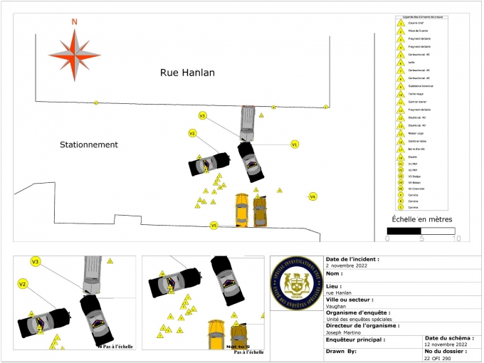 Le 2 novembre 2022, à 10 h 54, des enquêteurs spécialistes des sciences judiciaires ont été dépêchés à une adresse de Hanlan Road, à Vaughan. Ils sont arrivés à 12 h 02 sur les lieux - une propriété commerciale privée. C’était une journée claire et ensoleillée.