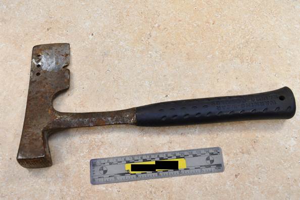 Les enquêteurs spécialistes des sciences judiciaires de l’UES ont examiné un marteau à toiture qui aurait été utilisé lors des événements. Il était muni d’une grosse tête de marteau d’un côté et d’une tête de ciseau ou de hache de l’autre côté.